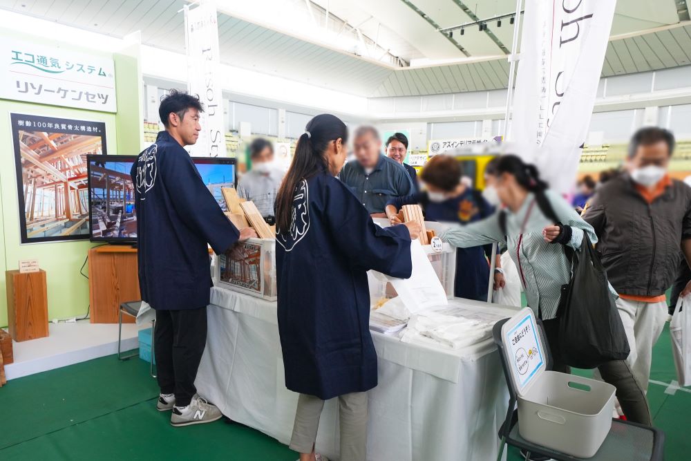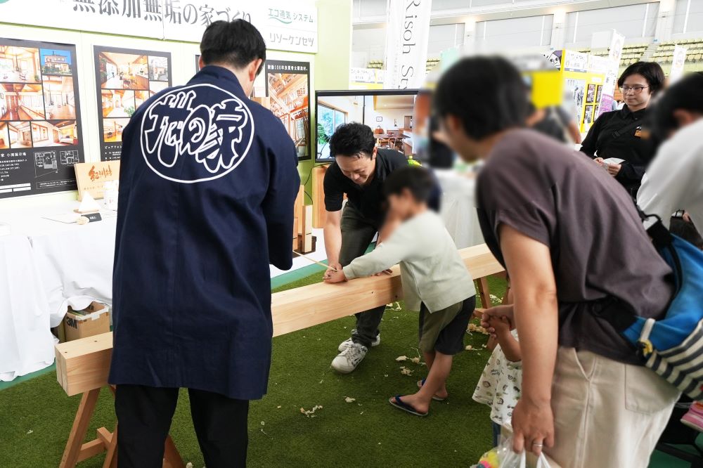 おかげさまで、当社ブースの「かんな削り体験」や「無垢材の端材無料配布」も大盛況となりました!