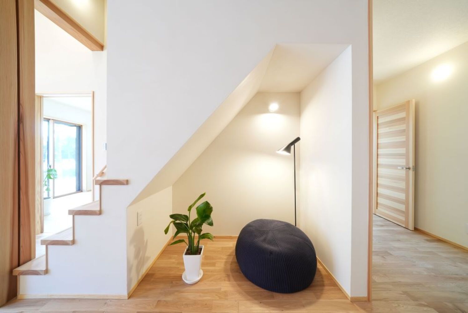 階段下のスペースを活用した、こぢんまりとした居心地の良いヌックです。