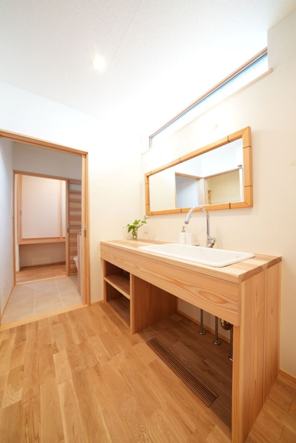 洗面化粧台は大工がお施主様のご希望のサイズに合わせて丁寧に手作りしております。