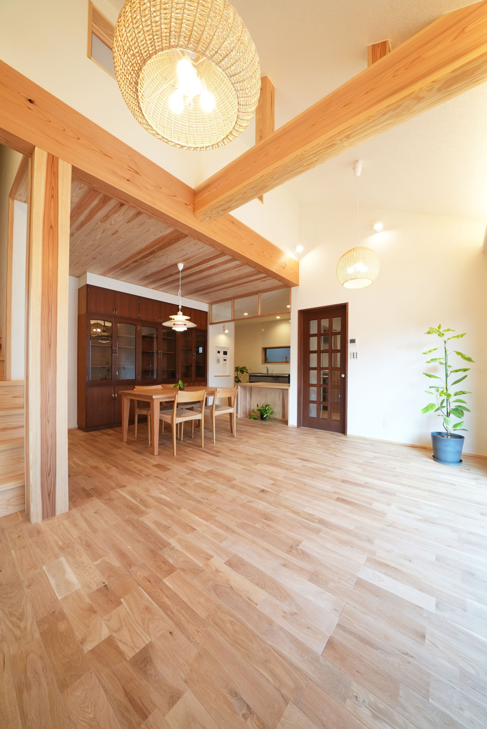 床はナラの無垢材です。床下エアコンで冬は足元から優しい暖かさに包まれます。