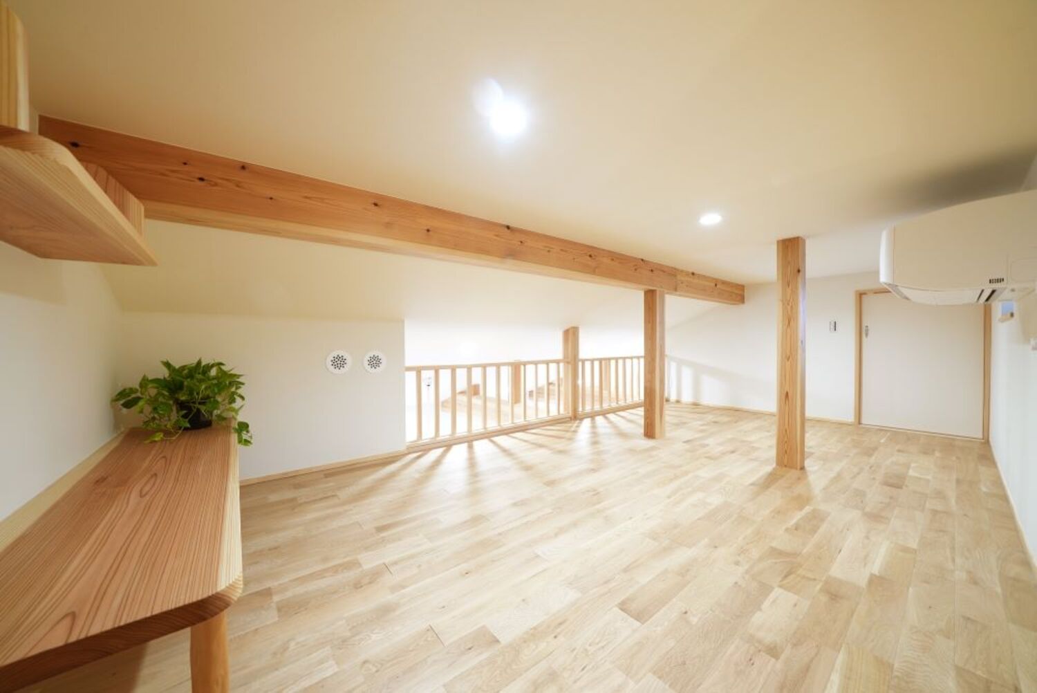 8.2帖あるロフトは、開放感のある“秘密基地”のような空間です。小学生のお孫さんが勉強や読書に集中できるよう、造作のカウンターと本棚を設けています。