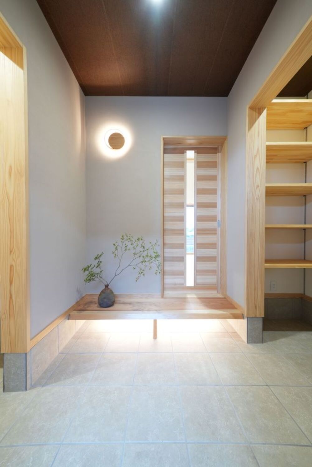 天井には深みのある色合いの柿渋の越前和紙を採用し、月をイメージした照明を配置するなど、お施主様のセンスが光ります。