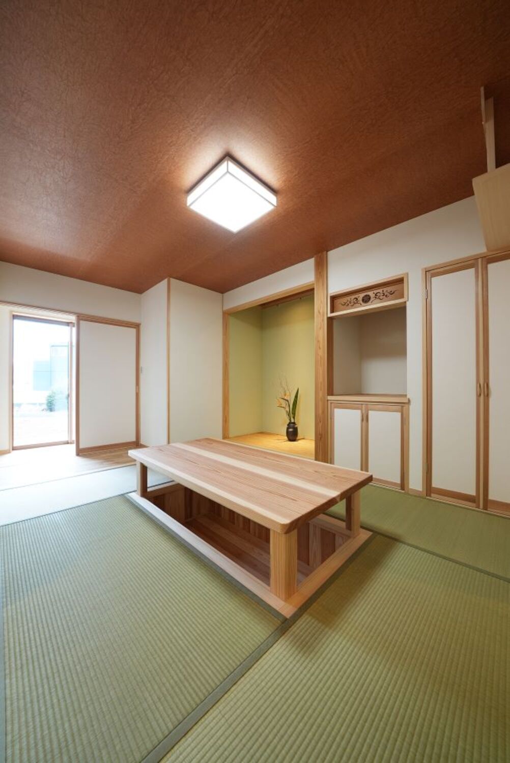 リビングと隣接した位置に設けた和室には、家族がリラックスできる造作の堀炬燵。